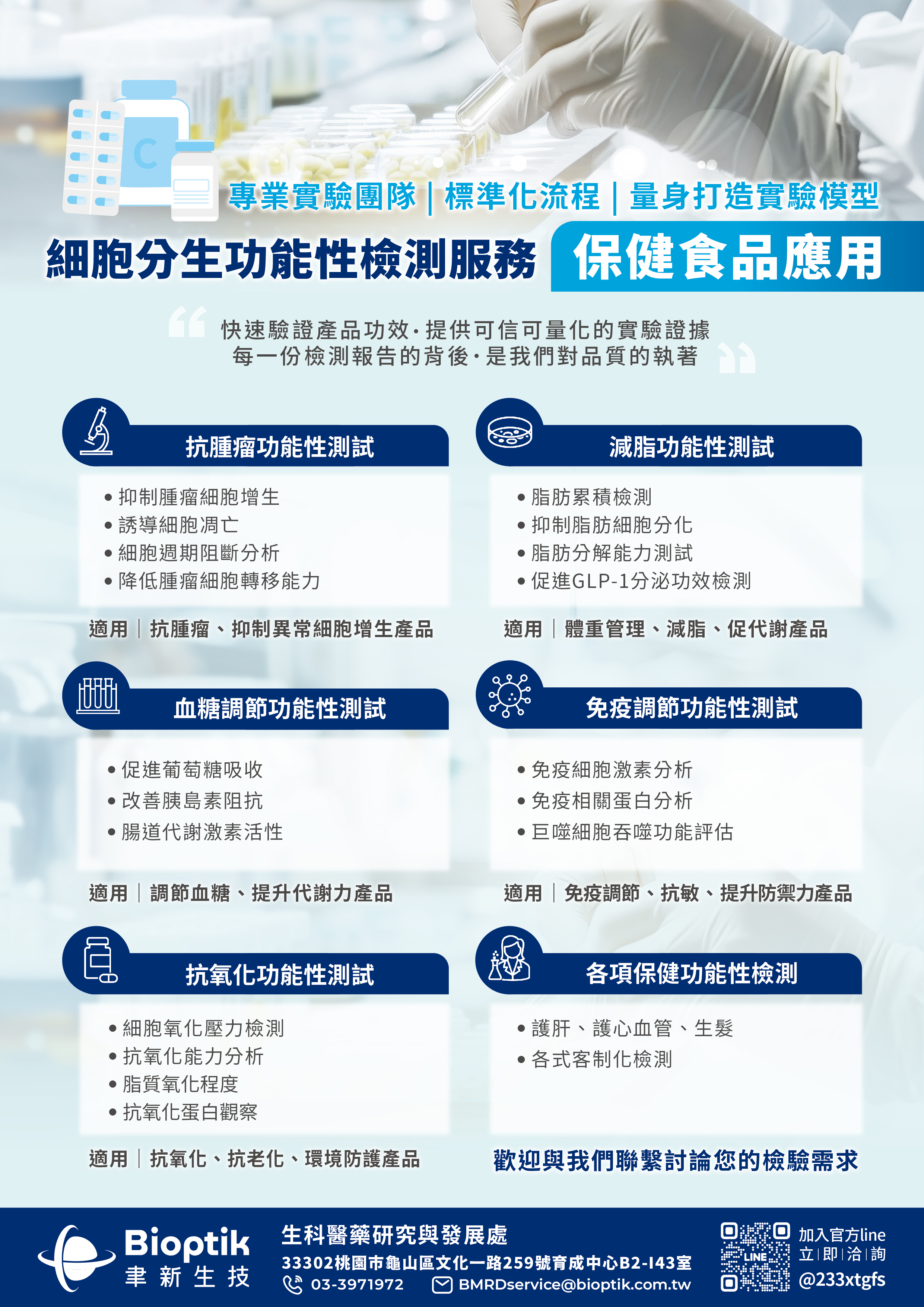 適用檢測項目:免疫調節、抗敏、提升防禦力產品